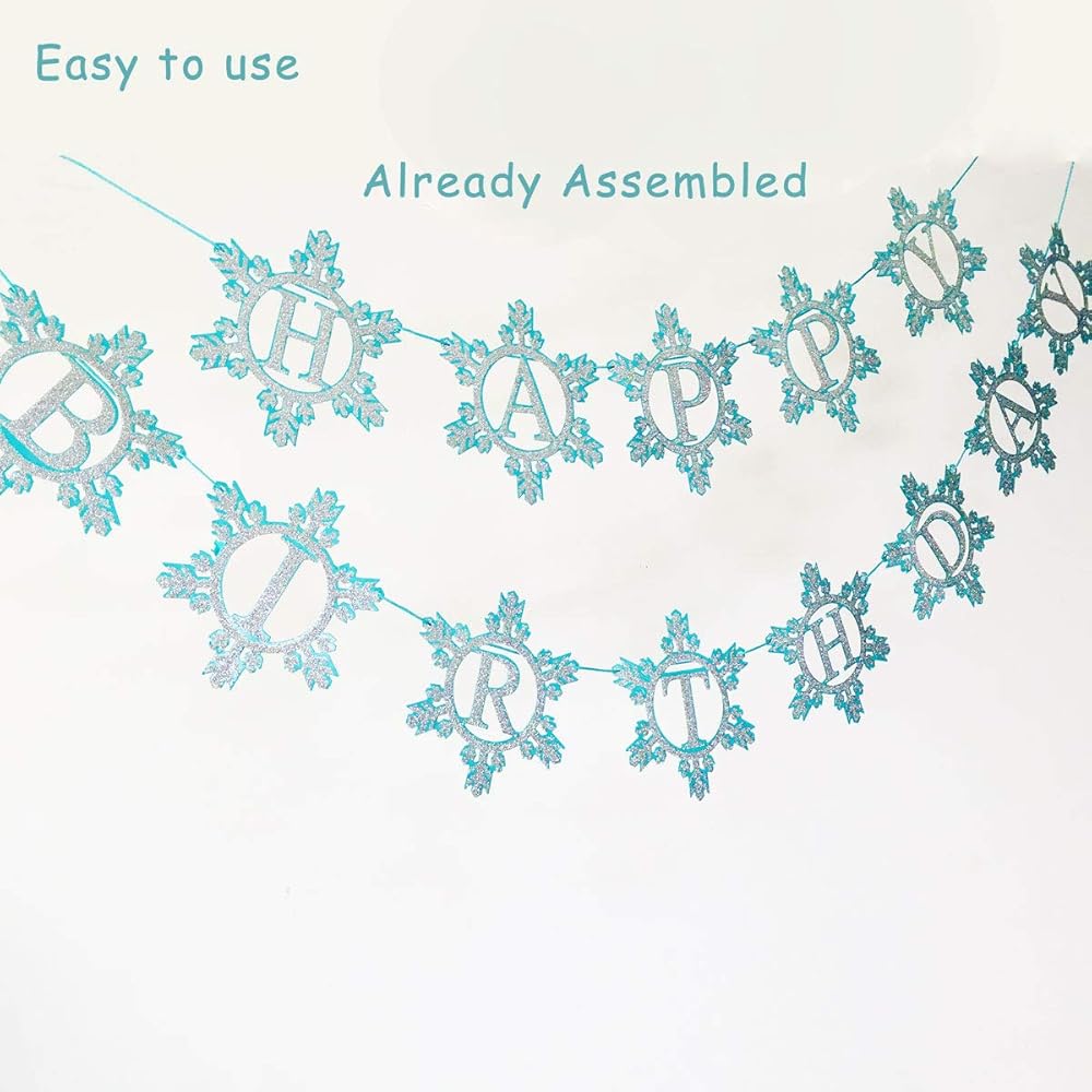Ready to use: The Snowflake Happy Birthday Banner comes ready to hang, never worry about fumbling to string the cards, enjoy your happy time! Each pennant can be adjusted freely. Frozen Happy Birthday Banner is silver sparkling, look great at any venue!