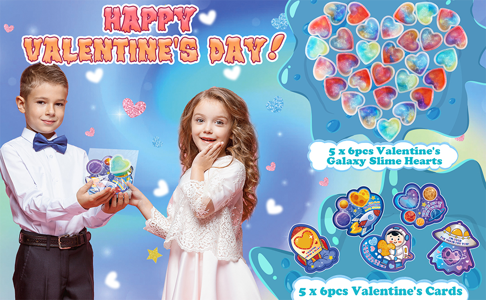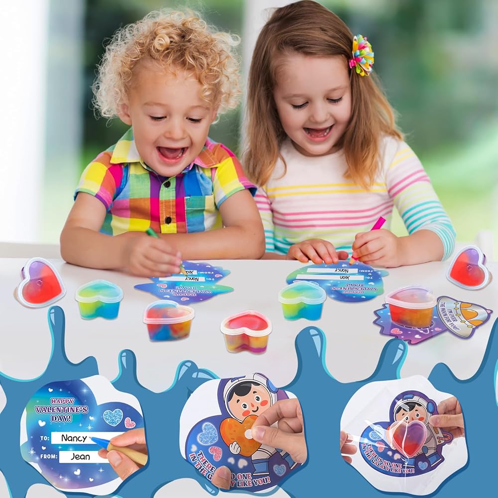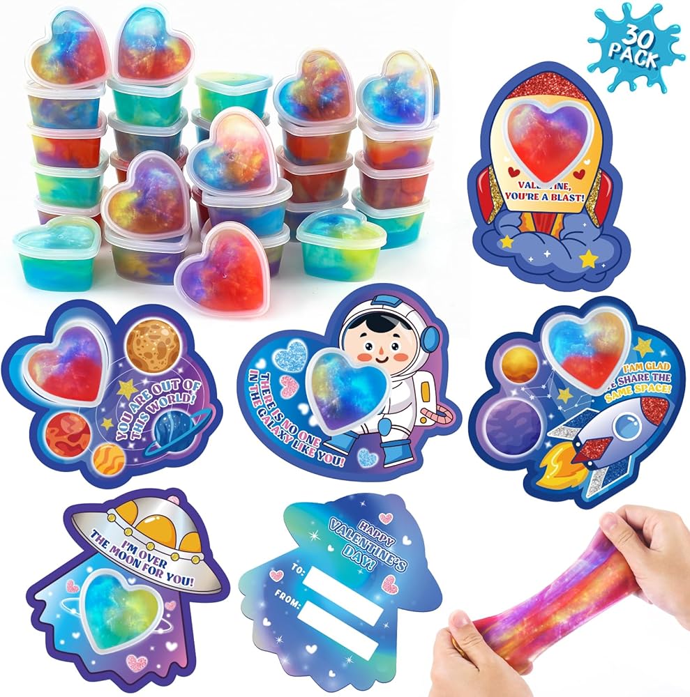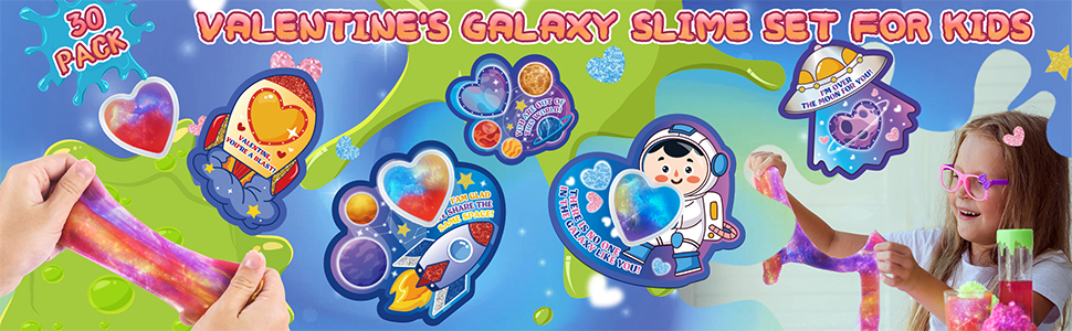 IDEAL VALENTINE EXCHANGE GIFTS - It is not only a fun galaxy slime toys, also a perfect valentines gifts! Express your love by writing a blessing and exchange cards with your classroom friends. Believe they will be very surprised to receive this gifts! It is absolutely a great gift choice for kids school classroom Valentine's exchange, Valentine's classroom prizes, love notes, and more!