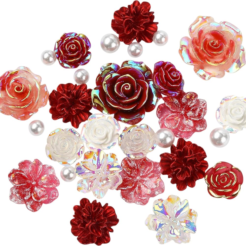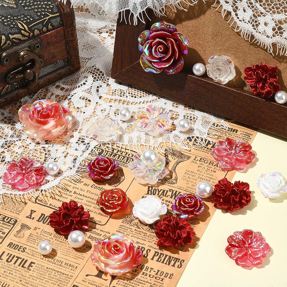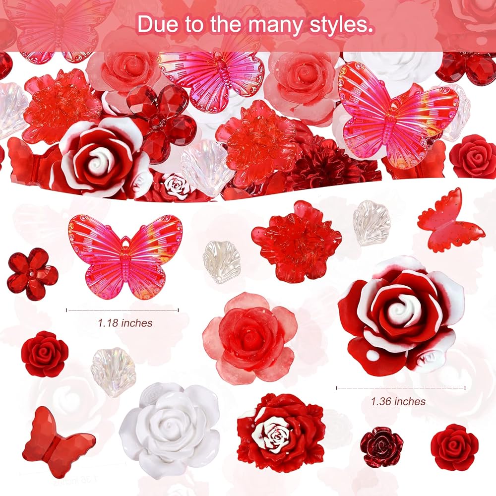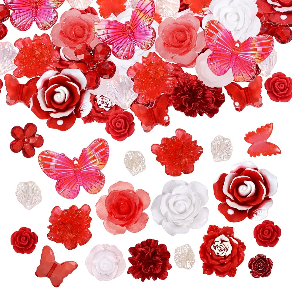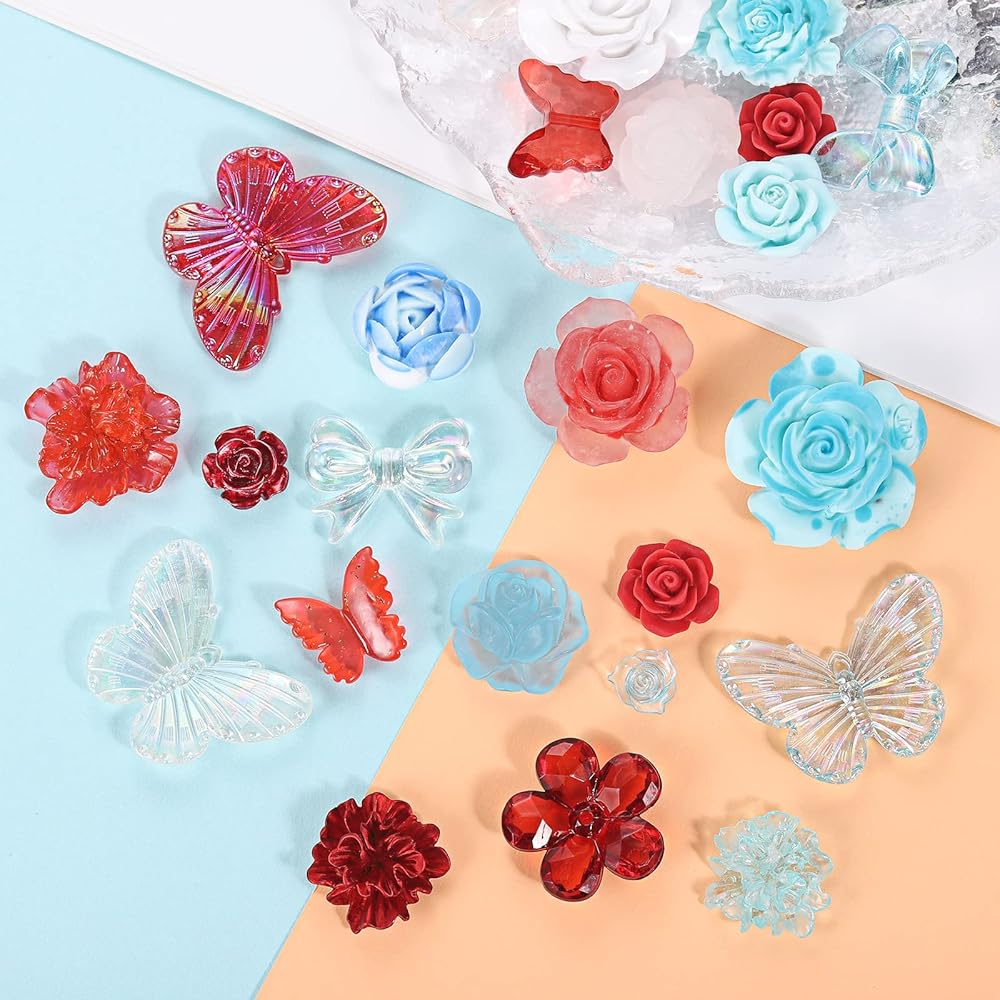BEEFLIYNG 1 PACK Random Mixed 3D Resin ABS Colorful Rose Flower Butterfly Bow Charm Pearl Bead Acrylic Floral Decor Cabochons for Bracelet Earring Necklace Phone Case Craft DIY Jewelry Making