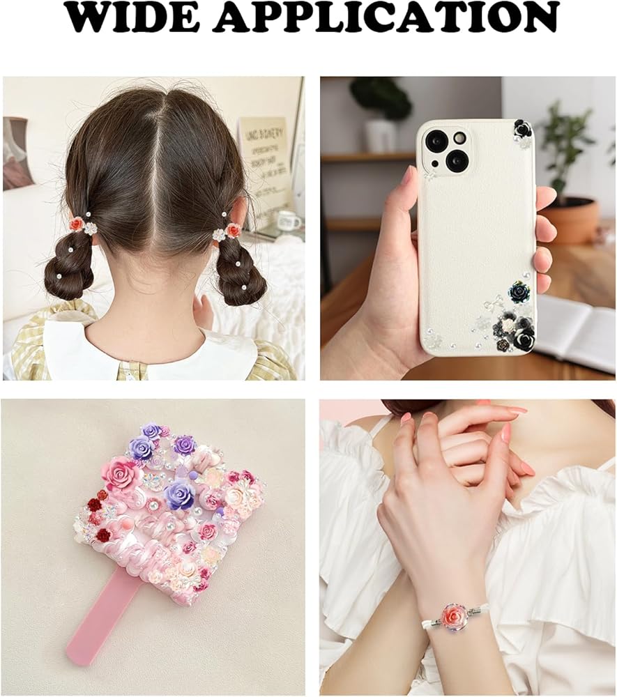 Multi-functional: the beads with holes are perfect for DIY beaded bracelets, necklaces, earrings and other jewelry, and can also be used to make cell phone lanyards, keychains and other dangle crafts, and the beads without holes can be made into hair clips, decorative cell phone cases, clothing, women's fashion bags, decorative makeup boxes, mirrors, etc.