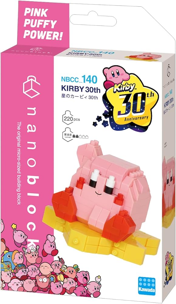 Kirby 30th from Nanoblock's Character Collection series stands approximately 2.75" tall and has 220 pieces.