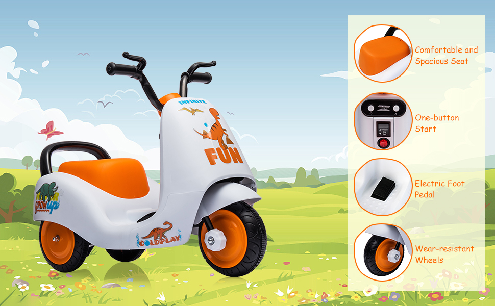 • Easy to Control: The 3-wheel designed motorcycle is smooth and simple to ride for your toddler or young child. Charge the battery according to the included instruction manual- then simply just turn it on, press the pedal, and go!