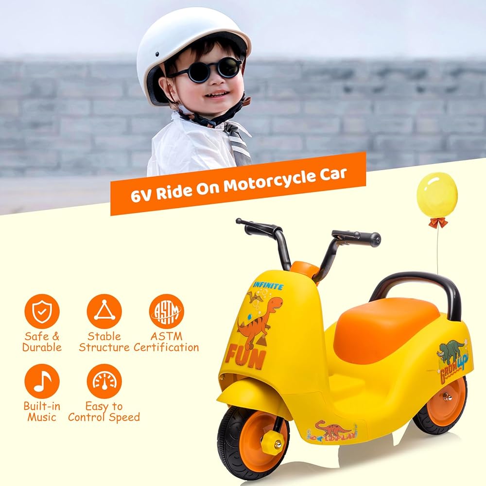 • Battery Powered Ride On Car: This ride-on car is powered by a 6V battery, providing an engaging ride for kids.