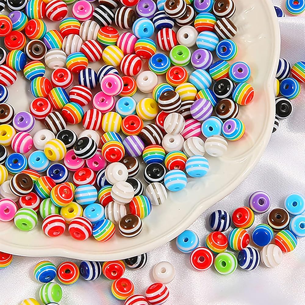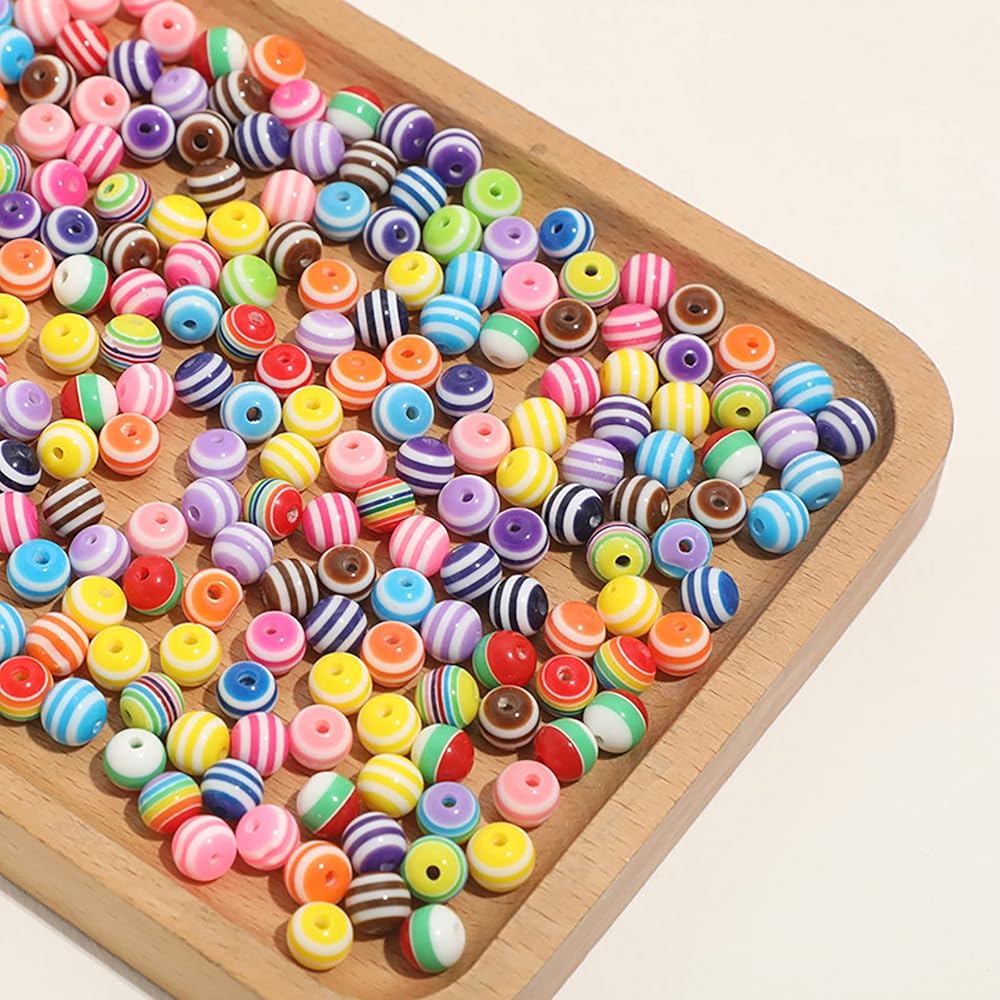 Rainbow Colors: The rainbow stripes beads for bracelets making sets are all randomly mixed colors, you can have all the colors at once! Adorable resin stripe beads will make your crafts look more vibrant and lovely, are perfect for kids and people who love cute jewelry!