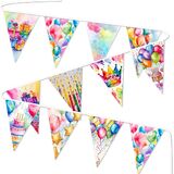 Package Included: 1x hanging fabric pennant banner with 12 pcs colorful flags. Banner Length: Approx 3 Meters / 10 feet. Patterns are printed on each polyester flag( 7.9 inch x 10.5 inch/20cm x 26.7cm) , visible from both sides.