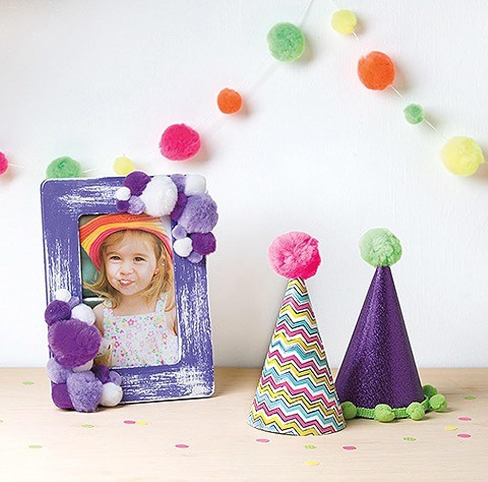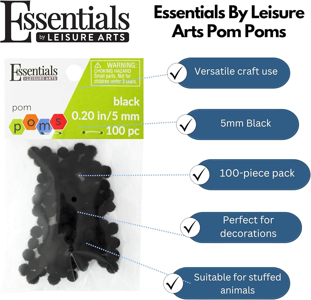 Essentials By Leisure Arts High Quality Pom Poms have so many craft uses. These 5mm white pom pom balls come in a package of 100 pieces and can be used to make various crafts such as toys, garlands, necklaces, pendants, dress decorations, etc., as well as decorative accessories, baby album covers, and decorative paintings. Children can create art projects and release their imagination with these pompoms. They can be applied to create toy, garland, wreaths gifts, art projects, necklace, camp crafts, decoration, costumes, etc, your kids can create as much as they like! Making craft projects together with these pompoms, can further the affection between parents and children. With these colorful pompoms, you can not only satisfy children's interest and love for DIY, but also improve children's ability to recognize various colors, develop hands-on skills, imagination and creativity and exercise hand-eye coordination. For everyone's safety, we do not recommend these pom pom balls for very young children as they can pose a choking hazard. Be sure to monitor all children during use.