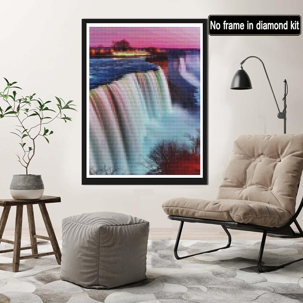 Rovepic 5D Diamond Painting Kits Waterfall Forest Round Full Drill, DIY Paint with Diamonds Art Landscape Crystal Rhinestone Cross Stitch for Home Office Wall Crafts Decorations 12×16 Inch