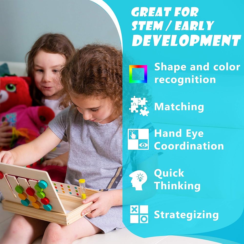 PLAY AND LEARN AT ONCE - Play Brainy Four-Color and Shape Puzzle Game provides your kids a super fun activity that helps them develop fundamental skills, such as shape and color recognition, hand-eye coordination, critical thinking, and more!