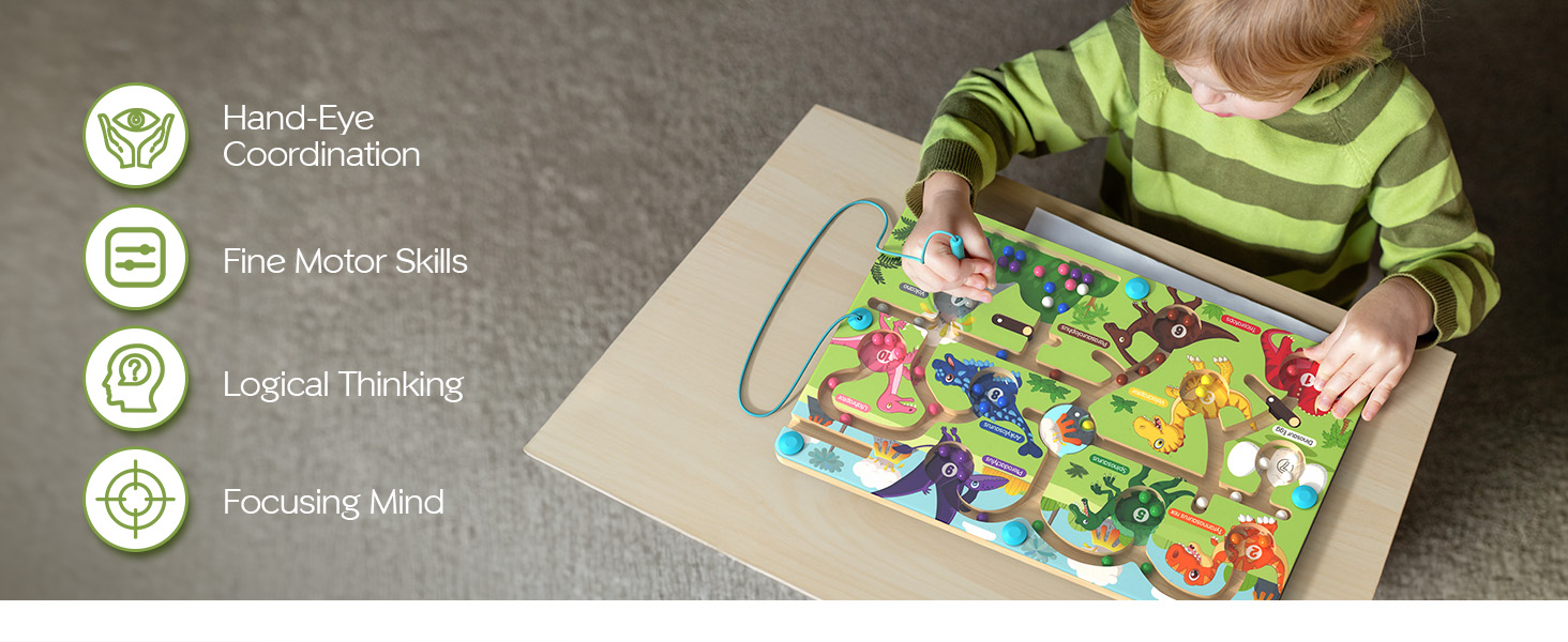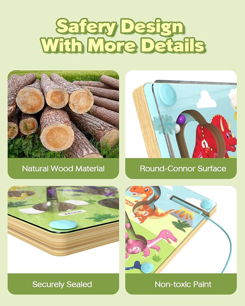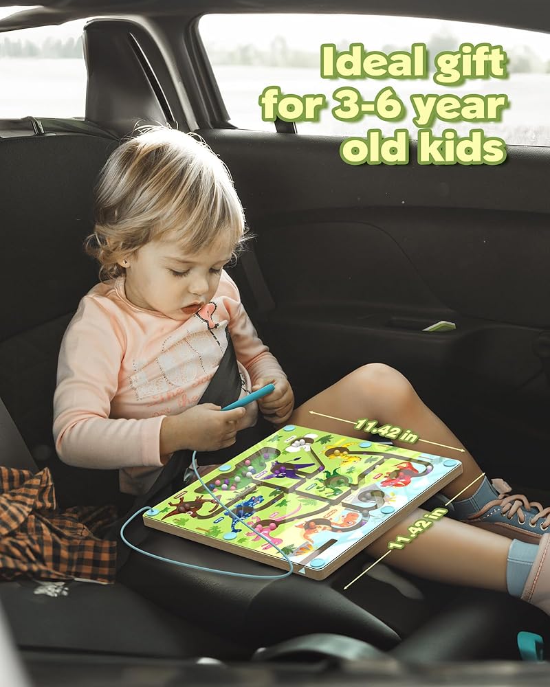 【Advanced Level Setup,More Fun& Patience】The magnet maze board features multiple routes that increase in difficulty, making the game more challenging and enjoyable. Toddler guide the magnetic beards and avoid the obstacles to develop hand-eye coordination and problem-solving skills.