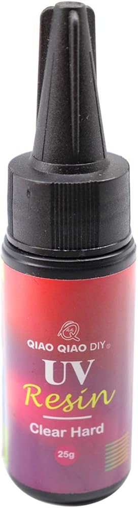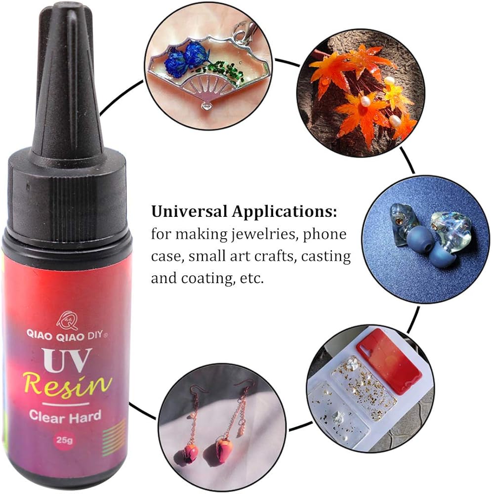 راتنجات الأشعة فوق البنفسجية الصلبة، QIAO QIAO DIY UV راتنجات الإيبوكسي الغراء معالجة سريعة بواسطة الأشعة فوق البنفسجية/أشعة الشمس، راتنجات معالجة بالأشعة فوق البنفسجية من النوع الصلب الشفاف لصنع المجوهرات/الحرف اليدوية/الصب (25 جم/0.88 أونصة)