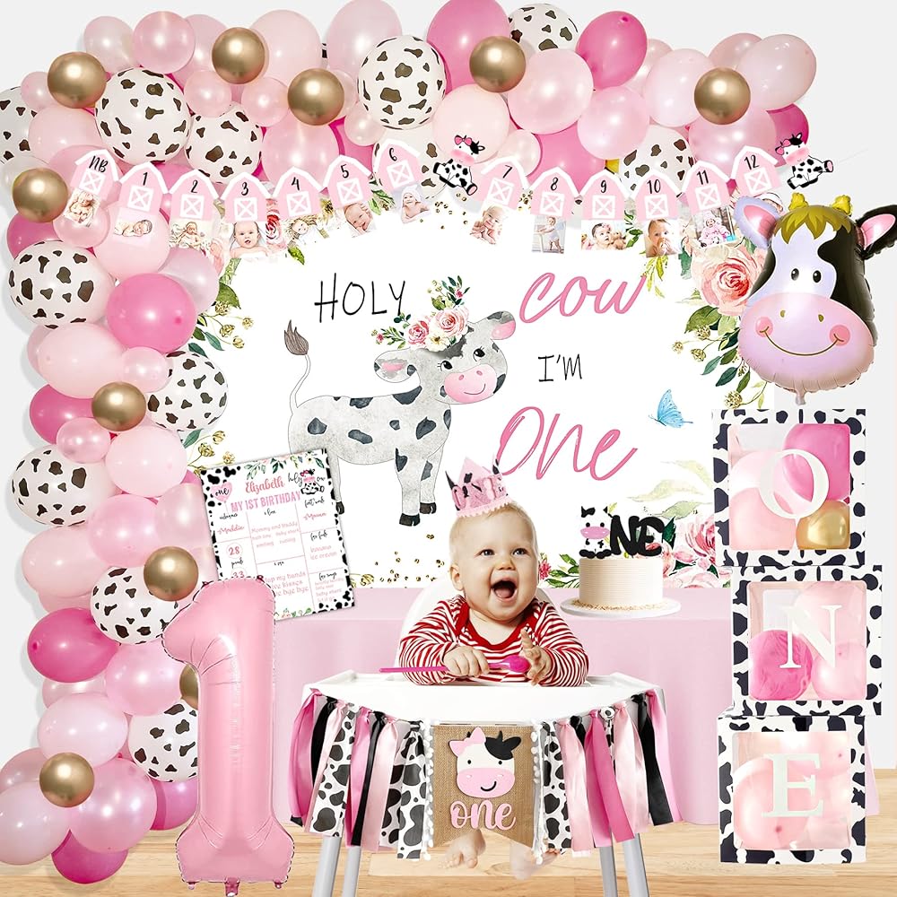 Holy Cow I’m One Birthday Decorations Girl, Cow First Birthday Party Decorations, First Birthday Decoration for Girl, Farmhouse Animal Cow First Birthday Party Decor