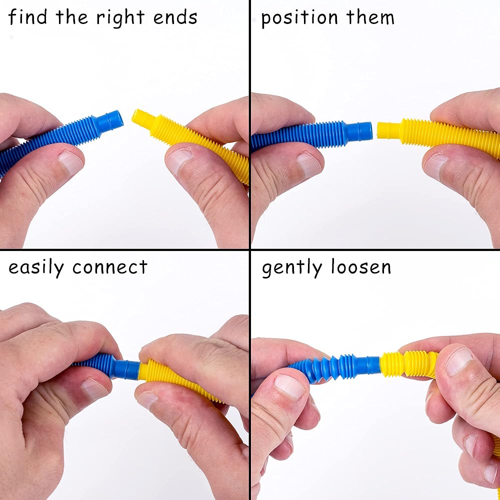 👍 PERFECT for ADHD, Autism, Calm or Stress Relief on the go; Thanks to their UNEVEN TEXTURE and SATISFYING POPPING SOUND the pipes have a soothing effect capturing your attention and helping you calm down and regain focus in even the most stressful of situations. Take these poppin' friends everywhere with you, to the office, to school or on a quick drive to the store; also used for GROUP THERAPY & ADD where multiple participants connect each others tubes or use them to create sound together;