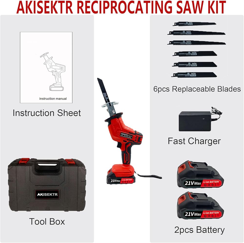 منشار ترددي لاسلكي، 6 شفرات منشار للخشب والمعدن، الاشجار، قطع بلاستيك PVC، منشار لاسلكي مع بطارية 2.0Ah وشاحن سريع