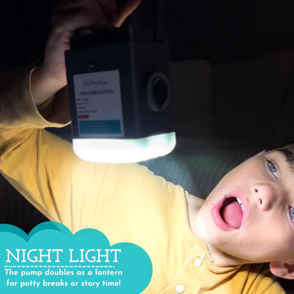THE NIGHT LIGHT - Did we mention the wireless pump doubles as a nightlight? Setting up your kids blow up bed is so much easier in darker places and potty breaks are no longer scary! t's easy to hold and hang in a tent or car with the built in handle. Toggle between 3 options: bright, brighter, and flashing.