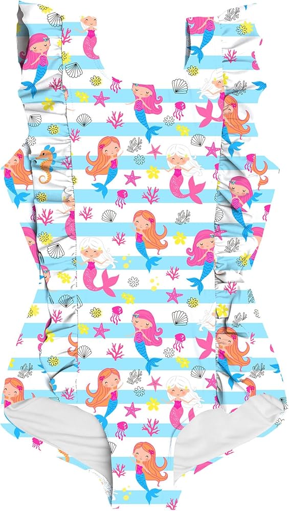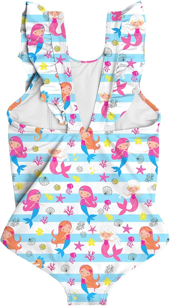 🍉Ruffle Swimsuit: Ruffles on the front, v cut ruffles back, striped, dinosaur, leopard, flowers,unicorn, mermaid and other graphic print, ruffles decoration, fashion design make your baby more cute and attractive.