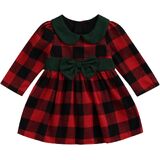 ❤Design:Comfortable fabric, red and green plaid with bow, waist tightened to make your princess more lovely