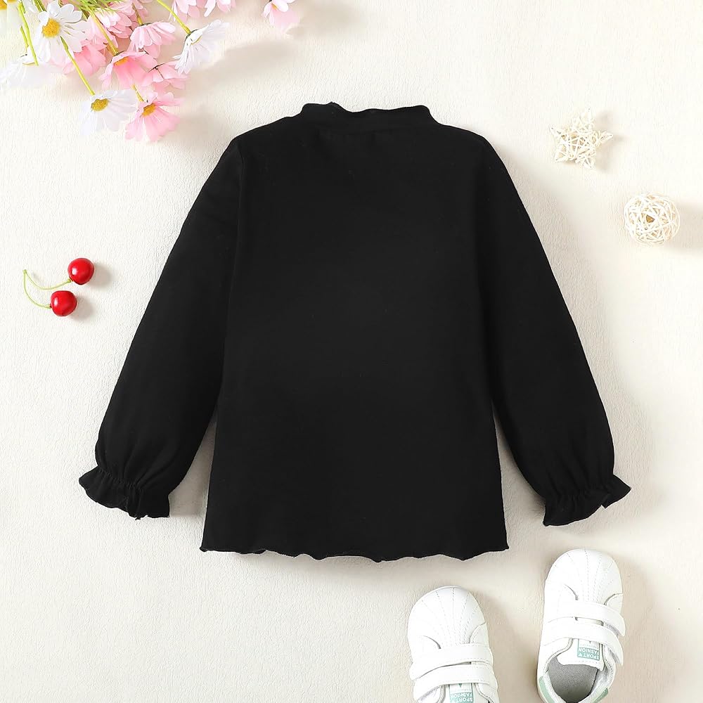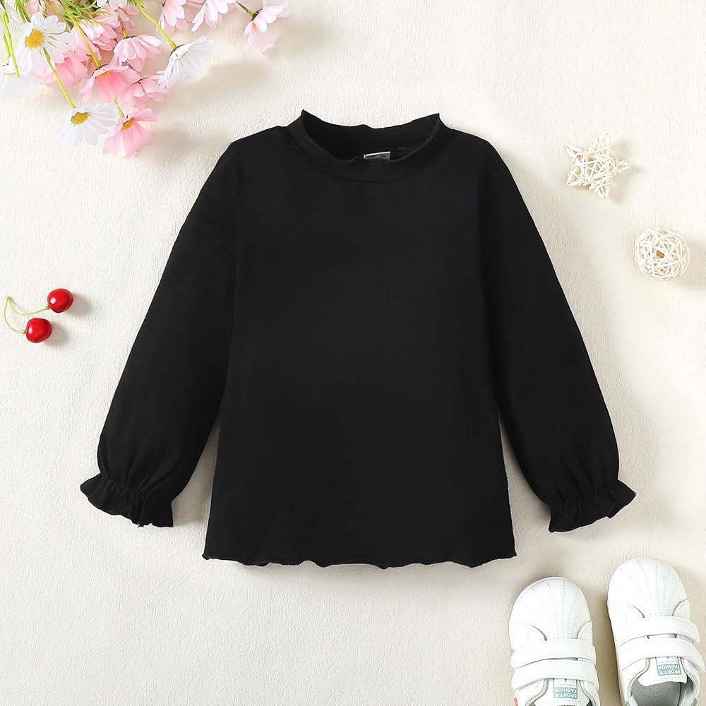 Toddler girl shirts: Cotton blended, Toddler baby girls ruffle solid color t-shirts, Fabric thick, these toddler shirts are super soft and breathable, comfortable and stretchy to the touch! Suitable for spring, summer, fall and winter wear, machine washable