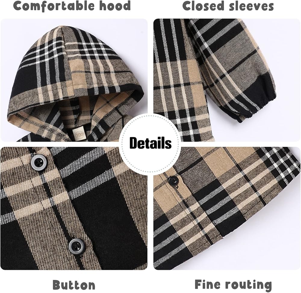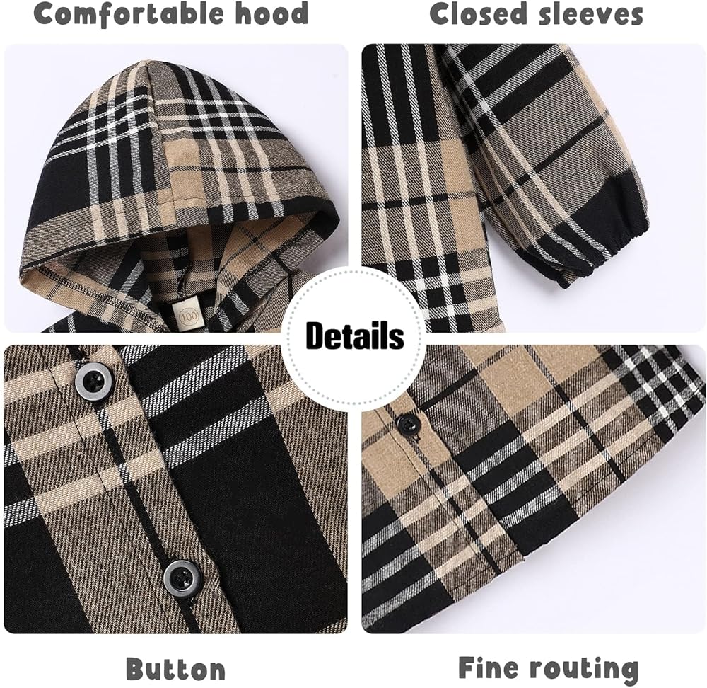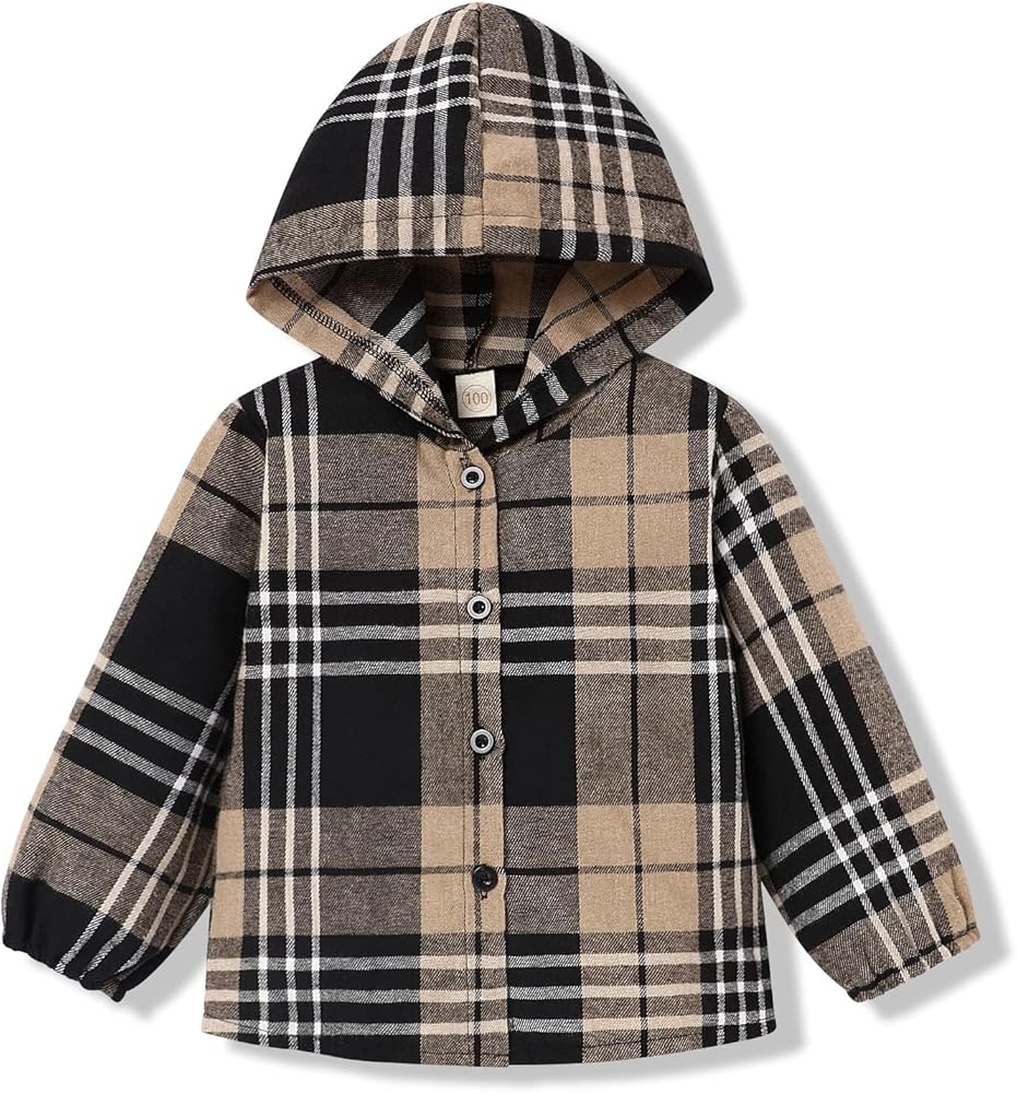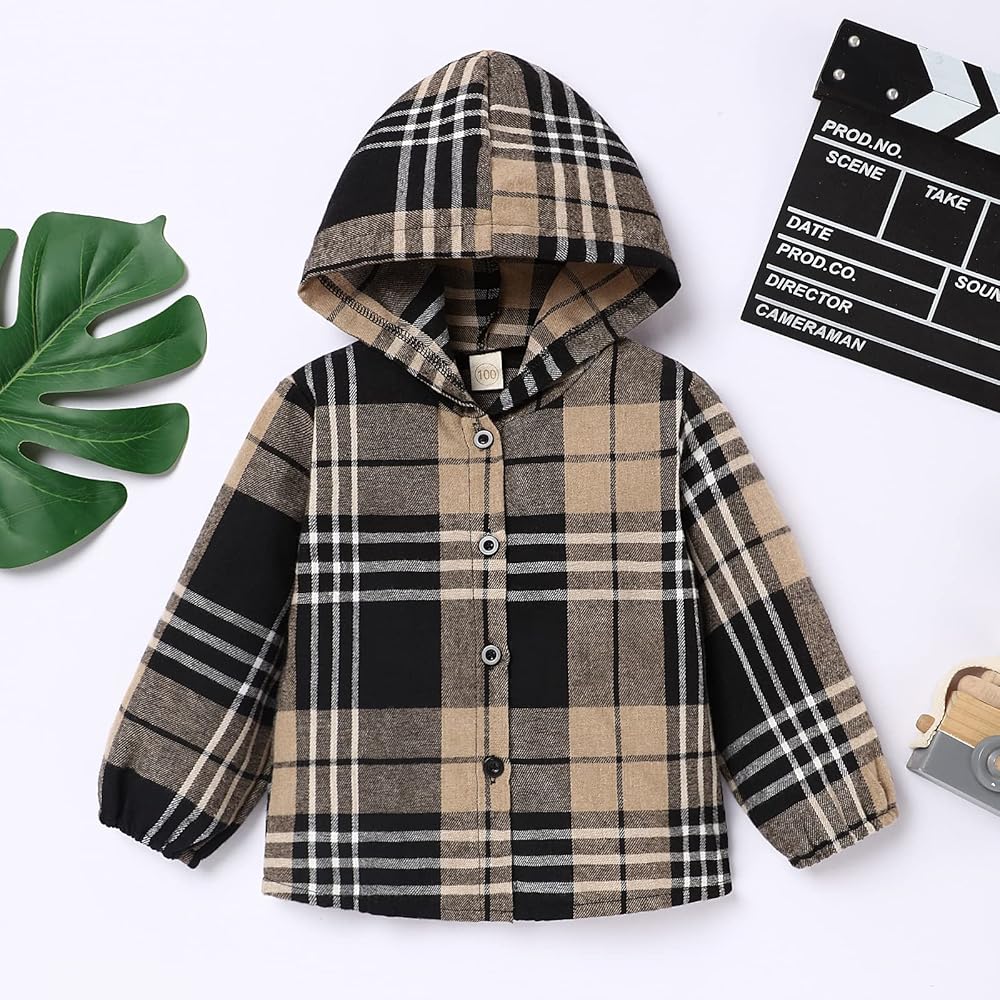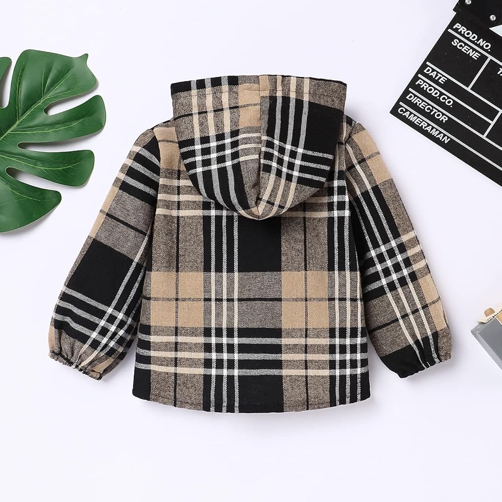 Fuermos Toddler Baby Boy Girls Hoodie Plaid Flannel Hooded Long Sleeve T-Shirt Tops Kid Clothes 2-6T