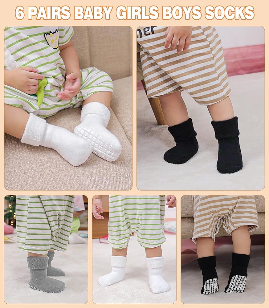 SIZE & CARE INSTRUCTIONS-- Package includes 6 pairs different colors baby socks and to easily match with multiple outfits. Warm baby socks are available in various sizes including 3-12 months baby, 1-3 years toddlers, 4-6 years little kids to suit your child's growing needs.