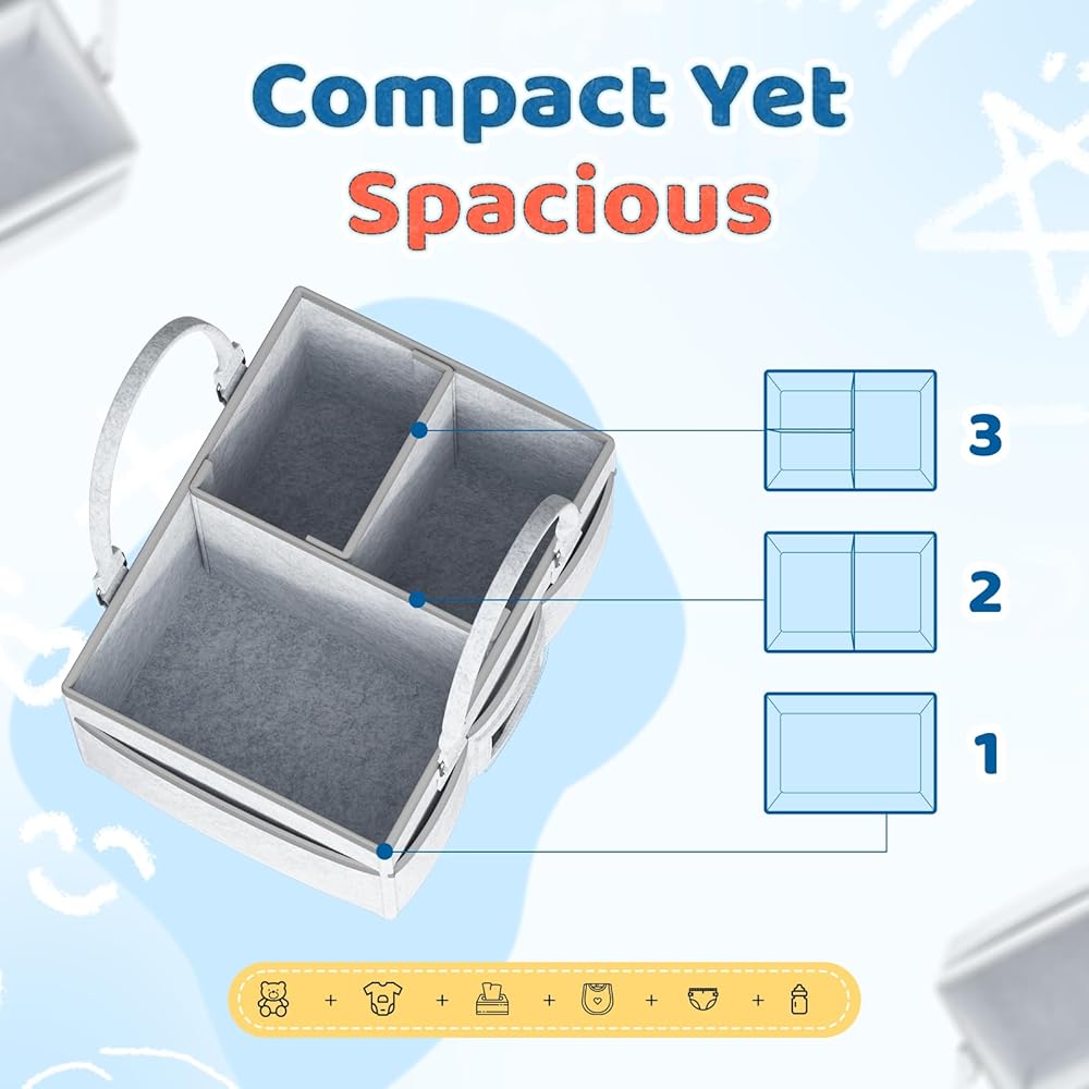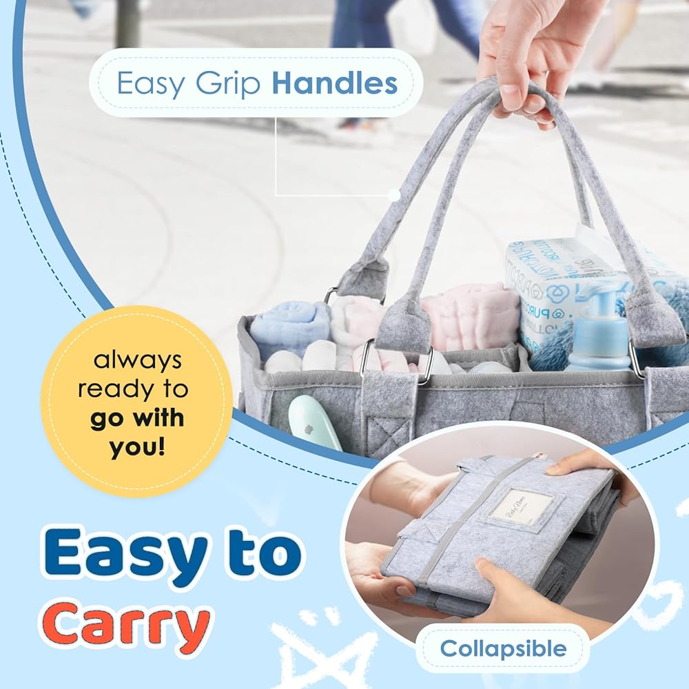 DURABLE & BABY-SAFE MATERIAL: This diaper organizer for changing table features high-quality, safe material and strong stitches, which is durable, and sturdy for daily use. Moreover, the soft felt and hemmed edges make it friendly for use around babies.