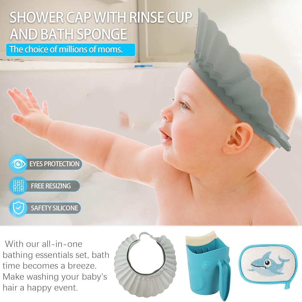 تحمي العيون والأذنين الحساسة: تحمي قبعة استحمام الأطفال القابلة للتعديل عيون طفلك وأذنيه من الشامبو والماء، مما يضمن تجربة غسيل شعر مريحة وخالية من الدموع.
