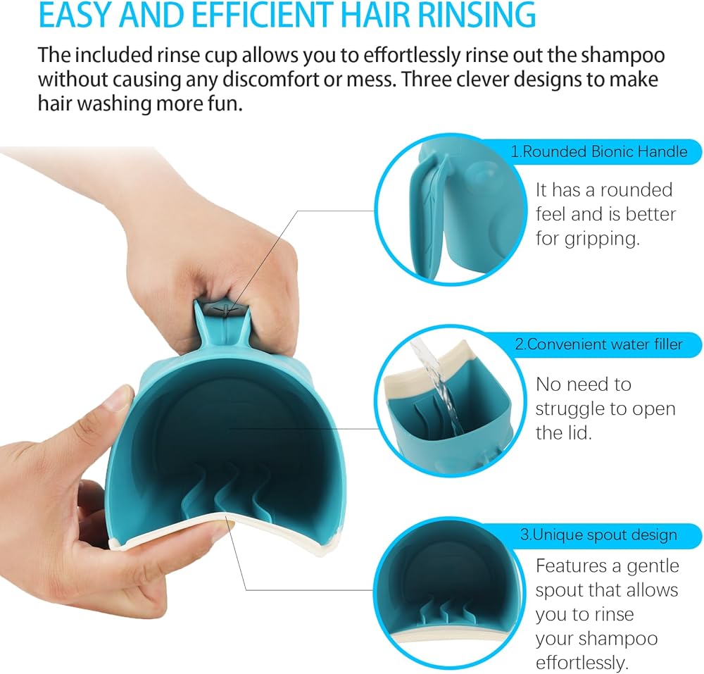 شطف شعر سهل وفعال: يتميز كوب الشطف المتضمن بصنبور صب لطيف، مما يسمح لك بشطف الشامبو دون عناء دون التسبب في أي إزعاج أو فوضى. قولي وداعًا للشعر المتشابك ومرحبًا بالخصلات النظيفة.