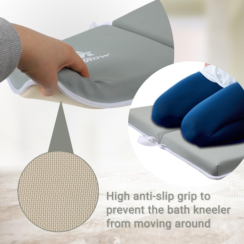 Anti-Slip & Durable - Non-slip base and 6 suction cups ensure your safety in wet bathroom. The thickness of Aoutrow Baby Bath Kneeler and Elbow Rest Pad is 1.5 inches, which makes the cushion more supportive and comfortable.