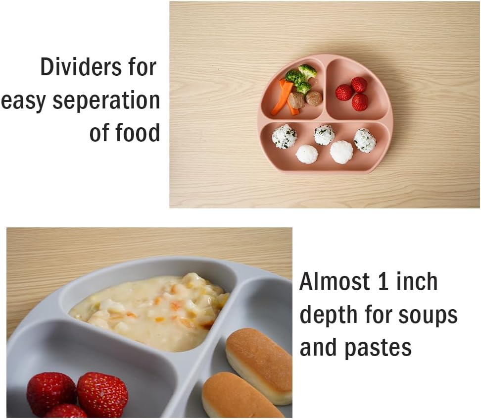 Secure Suction Design: The silicone eating bowls and suction baby plate set feature a clever design, providing firm stability during mealtime and minimizing food waste, making feeding time easier and more efficient.