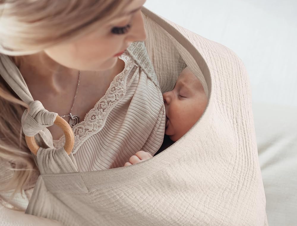 Muslin 100% Cotton Fabric: MVUOCR breast feeding cover made of breathable, durable and lightweight cotton fabric. Breathable can help to reduce rate of mom's and baby's perspiration, Durable can withstand the wear and tear of regular use and washing, Lightweight reduces the physical load on the mom during breastfeeding.(Note: Dryer not applicable.)