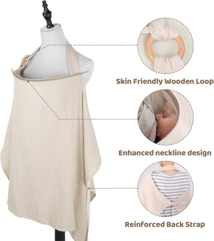 Unique Neckline and Adjustable Strap: The carefully designed ergonomic neckline is more convenient and comfortable for mom to breastfeed. A neck strap and back strap with wooden loop stabilize MVUOCR Privacy nursing cover and make breastfeeding easier.