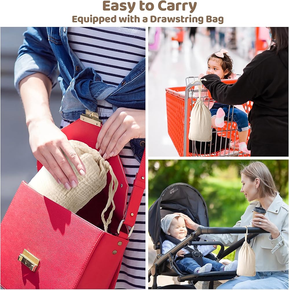 Drawstring Bag: The package contains MVUOCR muslin nursing cover and a drawstring bag, which can hold the nursing cover so that it is small enough to be placed on the pockets, bag or stroller, and can be easily taken out and used in any public place.