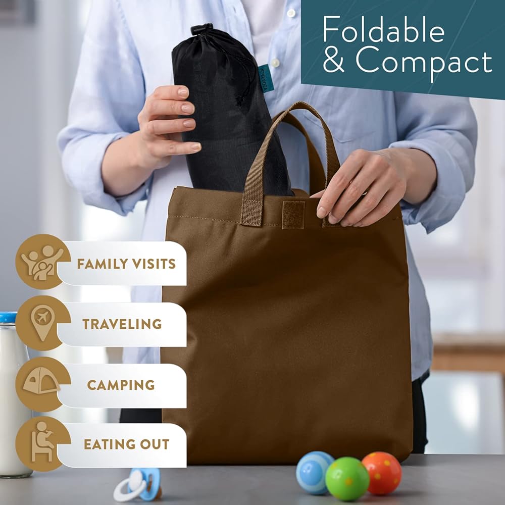 MODERN COLORS | MACHINE WASHABLE FOR EASY CARE: Coming in gender neutral, modern colors, this beautiful folding high chair booster seat accessory makes a great addition to any room. Made of the highest quality 100% polyester, water-resistant materials for unbeatable durability, our portable baby high chair is also machine washable to keep it spotless clean the easy way.
