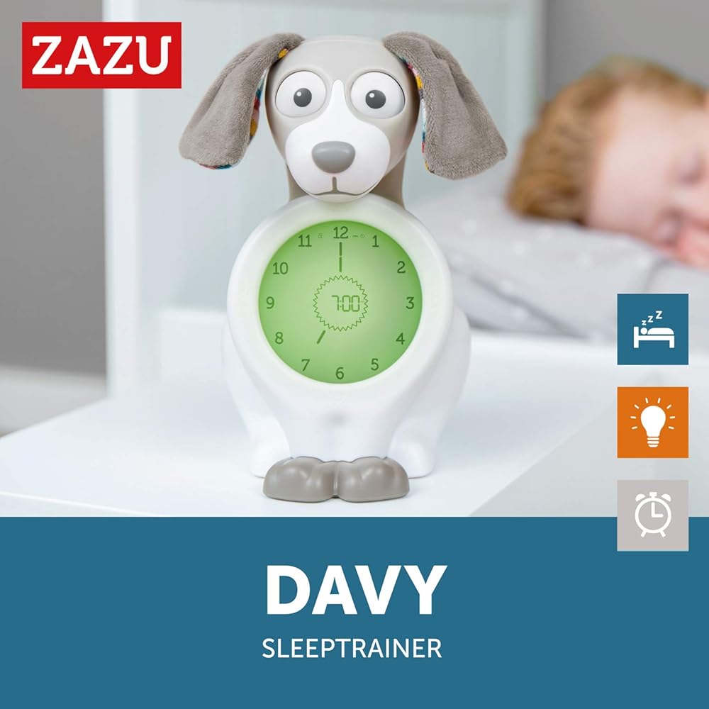 Zazu Davy The Dog - Interactive Sleep Trainer Clock & Nightlight for Kids - Color-Changing, Dual Time Display, Light-Up Alarm Clock - Teaches Kids When to Wake Up - in Soothing Taupe