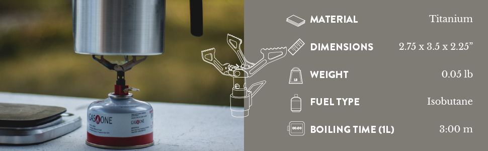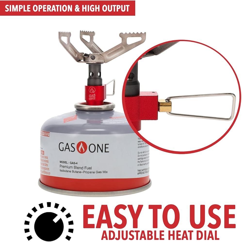 Gas One's GS-7900 Backpacking Stove is the perfect appliance for backpackers and campers alike! Made with durable titanium, Gas One's Backpacking Stove is made to withstand high heat as well as stay compact and discrete for easy portability