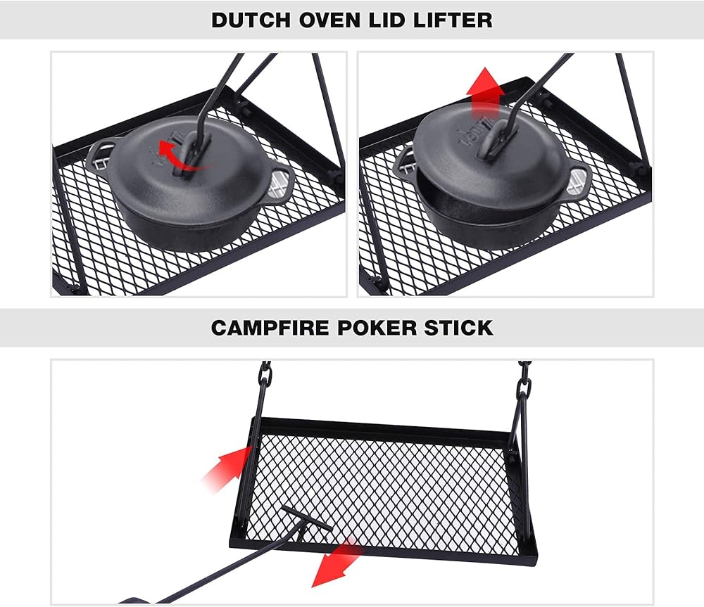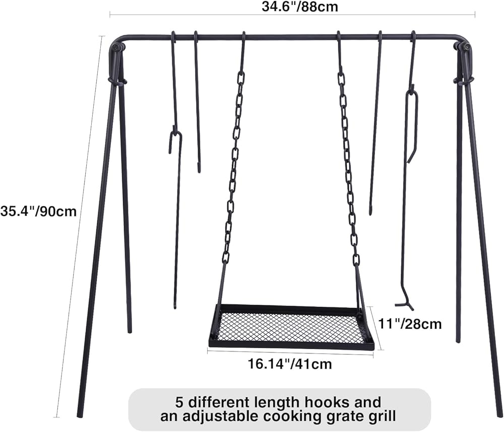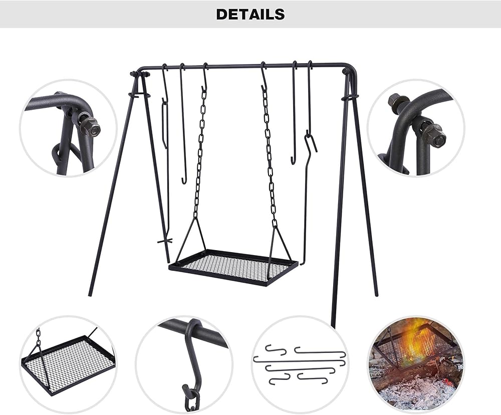 Material: The Swing Grill Campfire Cooking Stand is made of high quality carbon steel material make it solid and durable to use, high temperature resistant, can be directly used in campfire.