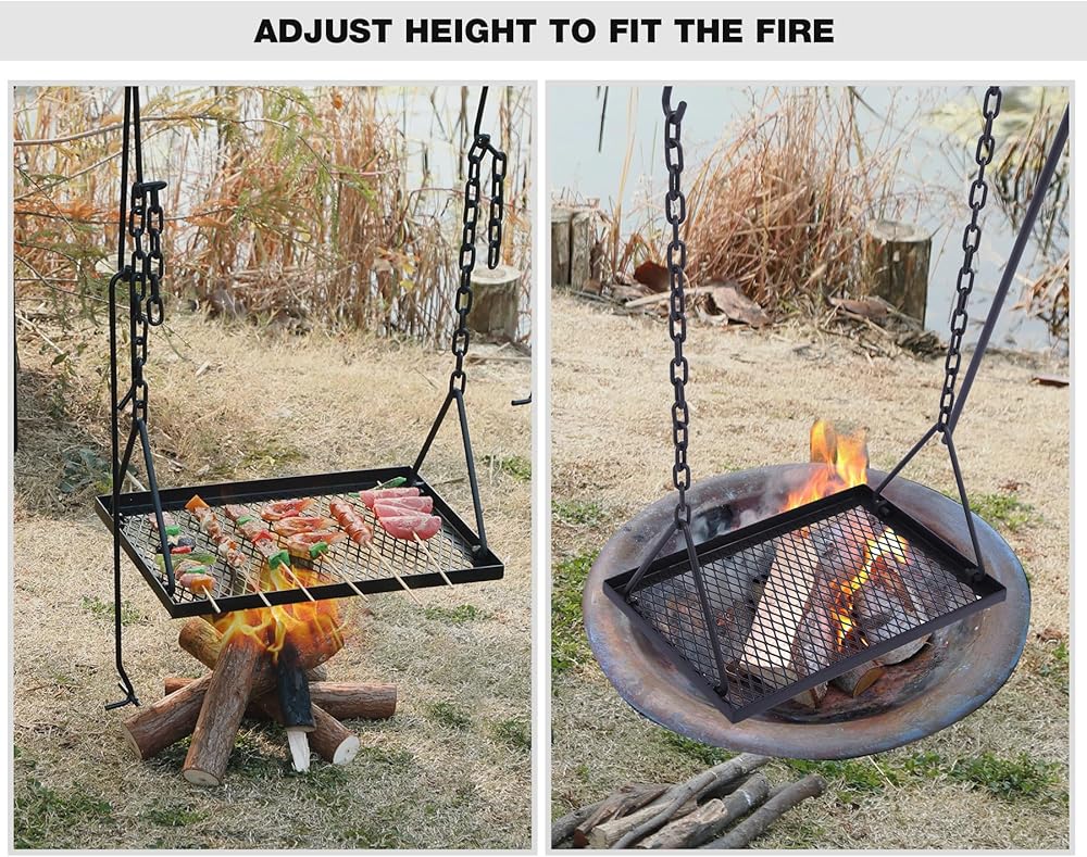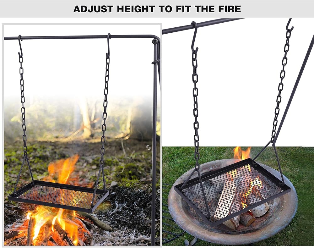 Adjustable design: The BBQ Grill Swing Cooking Stand comes with the convenient swing grill, chain latches to raise, and lower grill height. You can adjust the height of the campfire grill according to your need eaier to control the cooking temperature