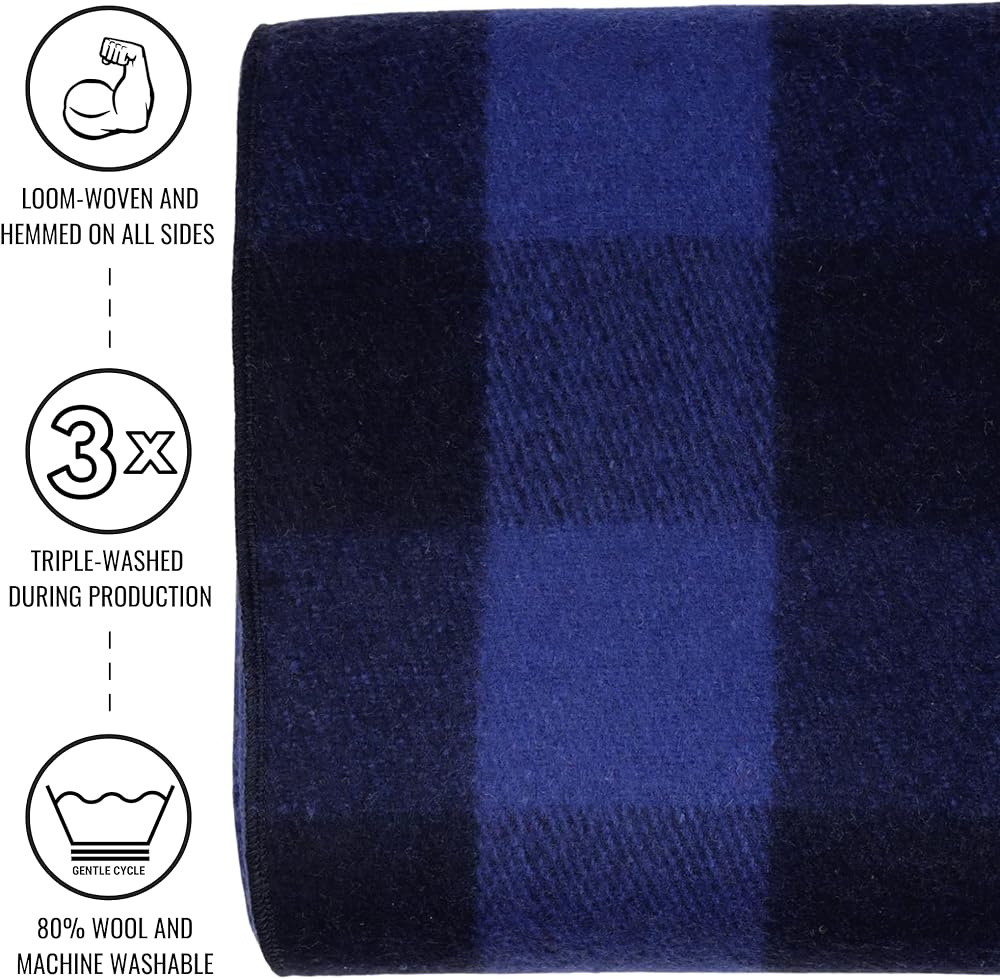 WARM & DEPENDABLE - Wool is a time-tested natural fabric that will keep you warm, even when wet. The remainder of the blanket is composed of 20% hypoallergenic synthetic fibers for durability and washability. Because wool fibers are relatively short, longer synthetic fibers help secure the weave, minimizing shedding and adding years of life to your blanket.