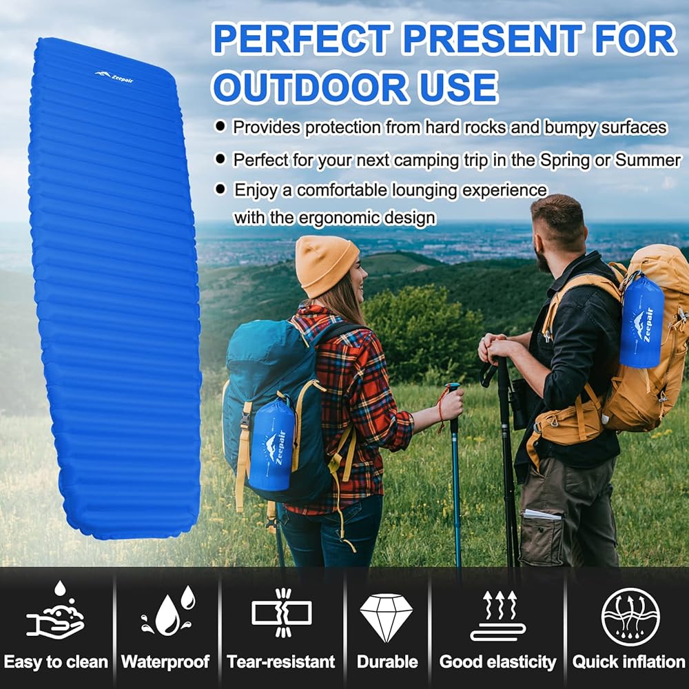 Unrivalled Sleeping Experience: Get a great night's sleep outdoors with Zeepair ultralight camping sleeping pad! Bar air cell design distributes even pressure, provides support for side, back and stomach sleepers, soft and comfortable, no more back pain. The soft, cushioned surface will keep you comfortable all night long, whether you're camping in the mountains or lounging in the backyard. Say goodbye to rough nights on the ground and hello to a restful night's sleep on our sleeping pad camping