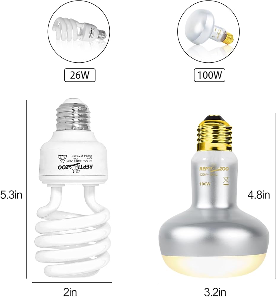 【UVB Reptile Light】This 26W energy-saving reptile bulb provides high-level UVB output, and it can save electricity while maintaining high brightness. This reptile bulb can be used up to 365 days(each day for 6-8 hours).