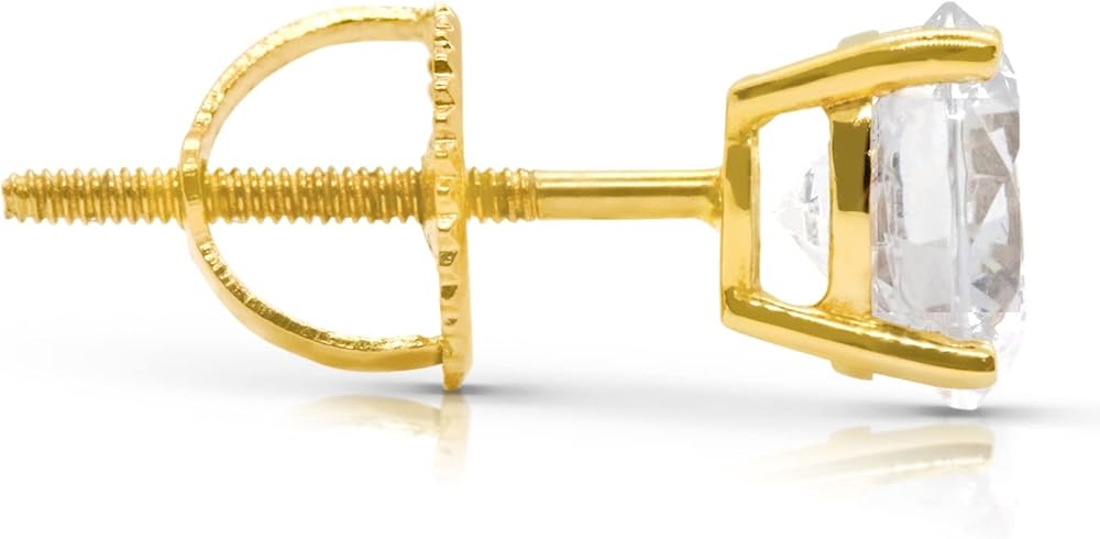 Great with any attire - These yellow 14k gold stud earrings with amazing simulated diamonds are highly rated yet more affordable than natural subpar quality diamonds. Natural and even lab created diamonds of comparable quality would cost thousands! Great with any attire from causal to formal and great for travel jewelry. Delight that someone special with our diamond studs for Valentine’s Day, Anniversary, Mother’s Day, Birthday, Christmas. Includes a gift box for any occasion.