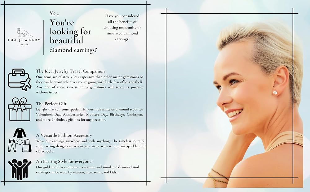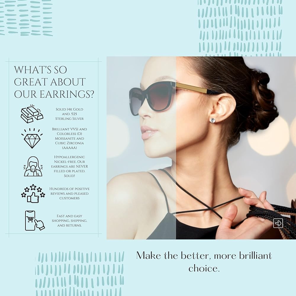 Unblemished Clarity and Cut - Our 2ct simulated diamond stud earrings and moissanite earrings are brilliant cut with VVS1 clarity. Natural gems are vulnerable to to blemishes and flaws, moissanite and simulated diamond earring stud sets are lab-made which ensures the gem remains untarnished. The timeless solitaire design features beautiful gems nestled in four-prong settings.