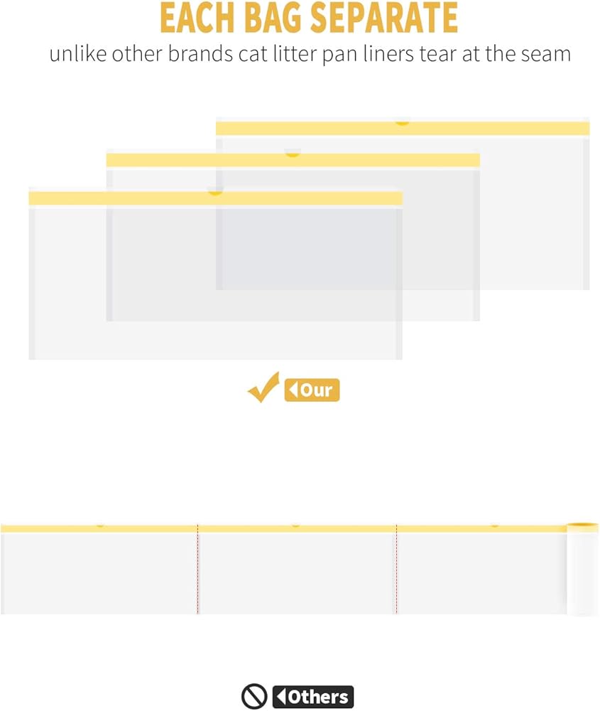 Litter control is part of everyday life when you live with a cat. KONE cat litter box liners fit for a wide-profile base litter pan to contain litter scatter and help keep floors litter-free, also can be oriented in a variety of positions in the home, allowing comfortable access for cats from any side. We are focused on a sanitary way to dispose of pet waste. Wish you and your lovely cat a happy time.