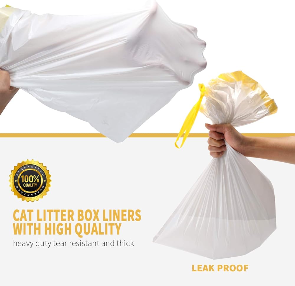 More convenient to clean your cat litter box with KONE drawstring handles litter box liners, save your cleanup time. Protect your litter box and floors from litter and easily dispose of litter when you are ready to. The liners provides a silk surface and sleek contemporary style. Best of all, made of extra thick material, less prone to puncturing or tearing.