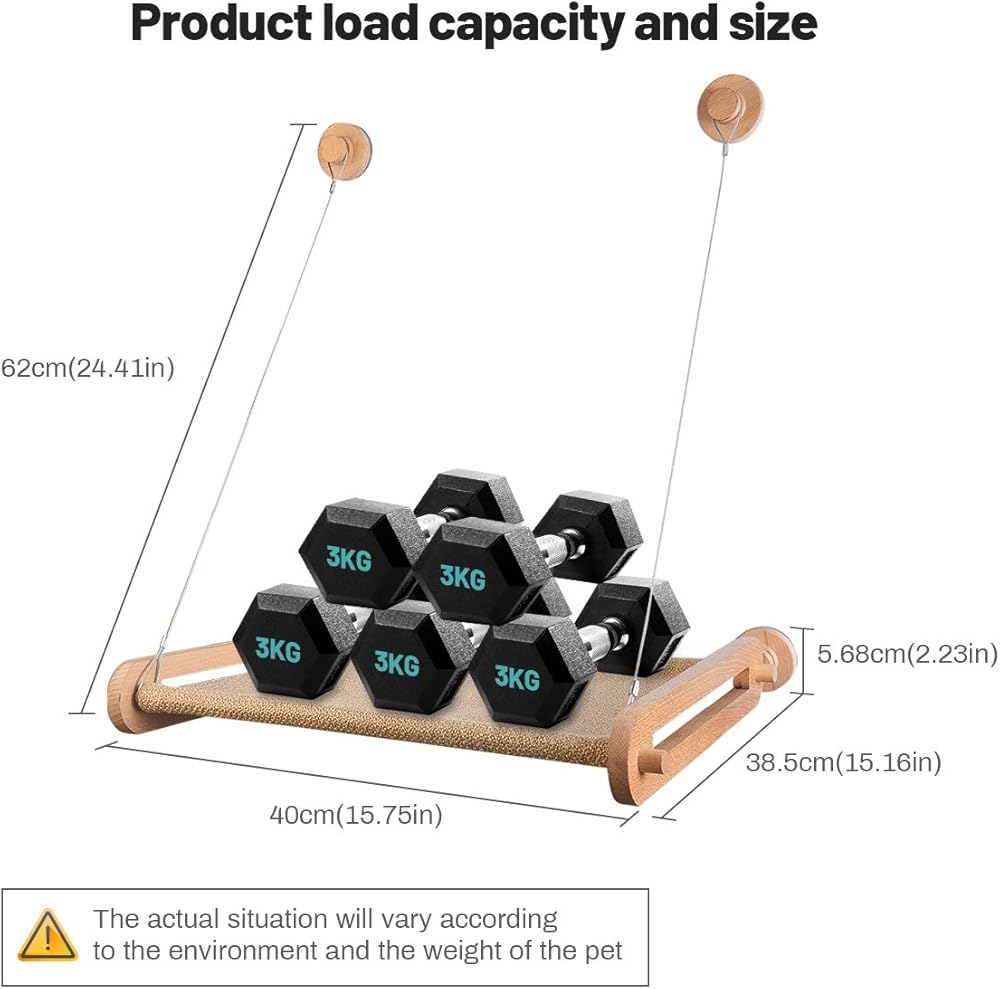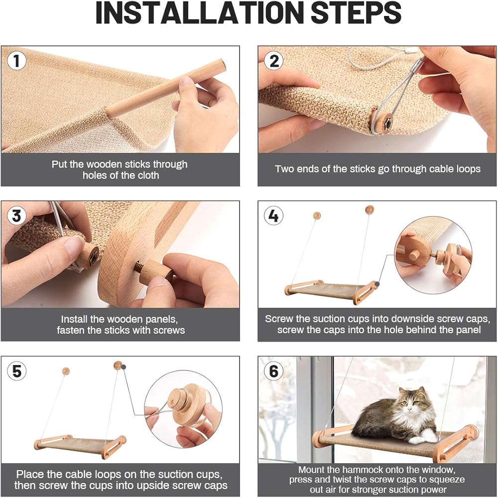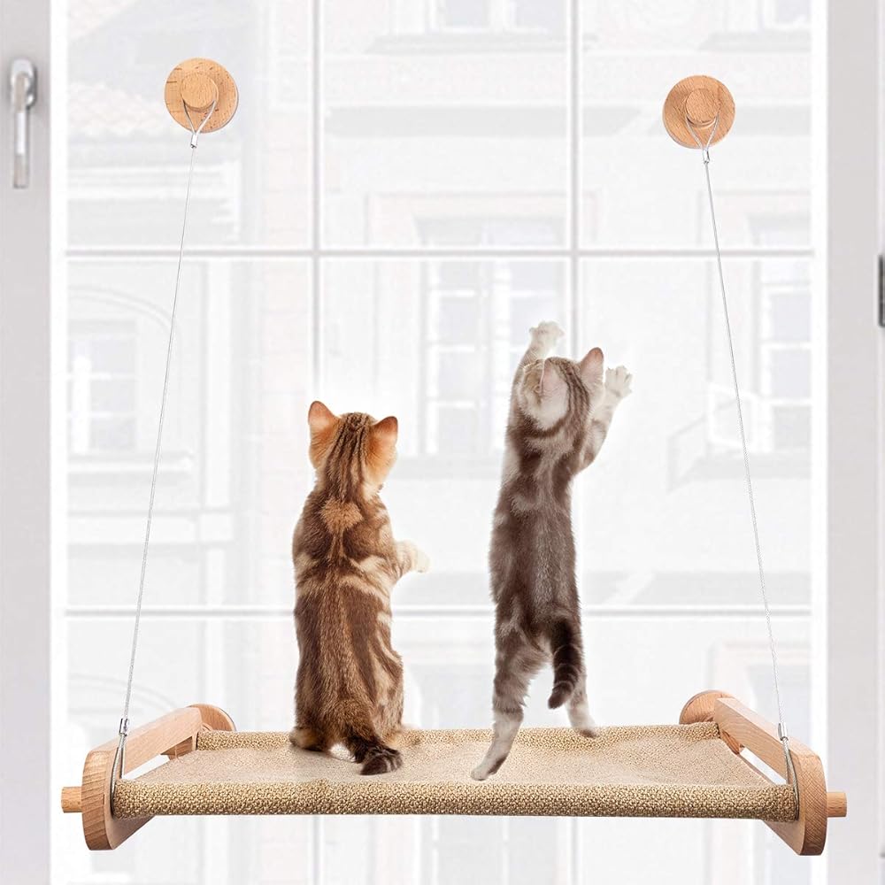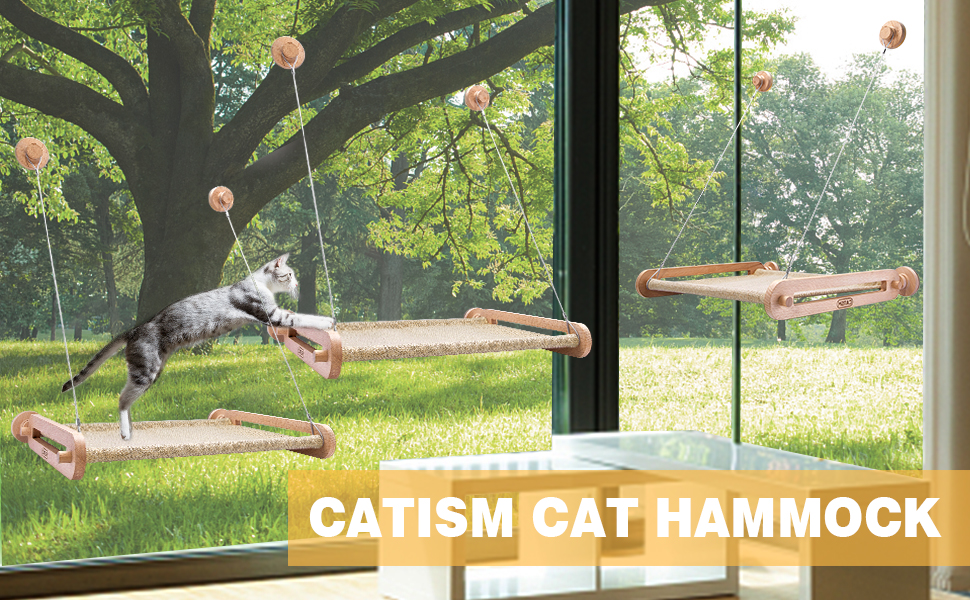 🐈【STYLISH DESIGN】 This cat hammock is designed with cats and cat lovers in mind, the khaki colored wooden cat bed is very textured and suitable for a variety of spaces, and the camping cat hammock will add a lot of fun to your home!