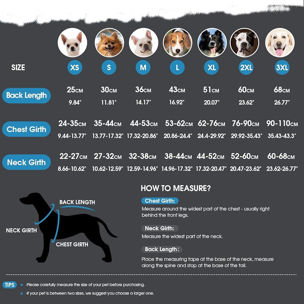 SIZE INQUIRY: If you don't make sure which size to choose, you can measure your dog firstly then contact us for a recommended size. We are pleased to help you to choose a suitable dog coat for your furry friend.