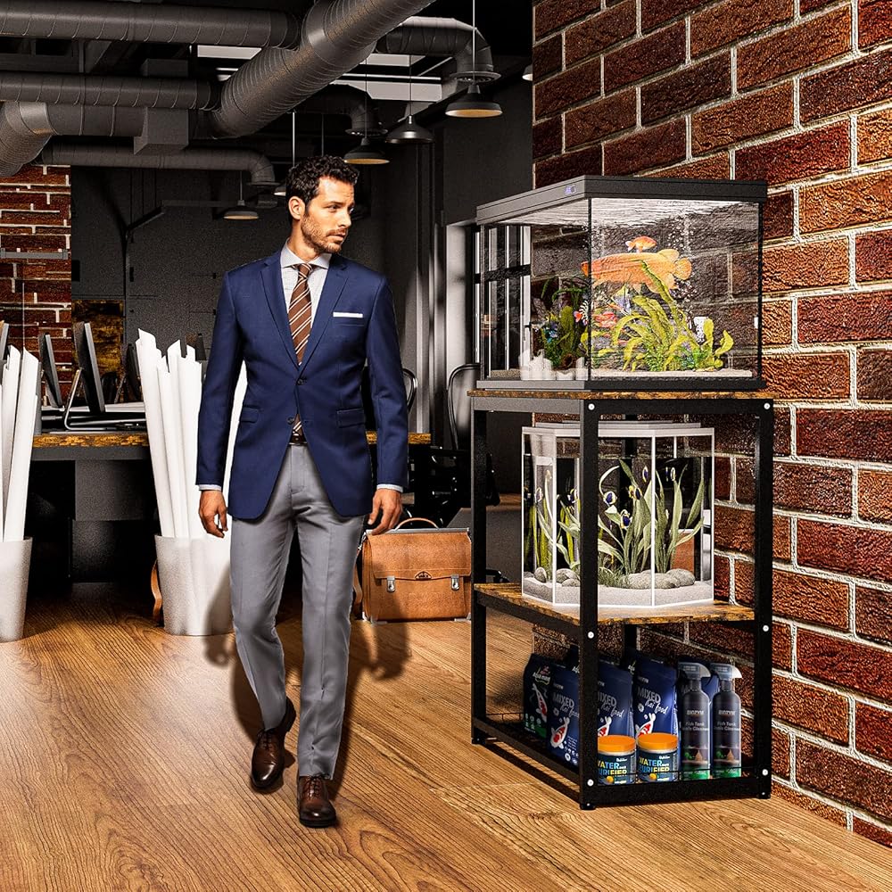 Aquarium Stand Storage Design: aquarium stand has 3 layers combination design, the top is suitable for putting 20 gallon fish tank stand, the middle is suitable for fish tank stand 10 gallon, the bottom basket is convenient for you to store fish feed, fish net, gravel cleaner, water conditioner and other items
