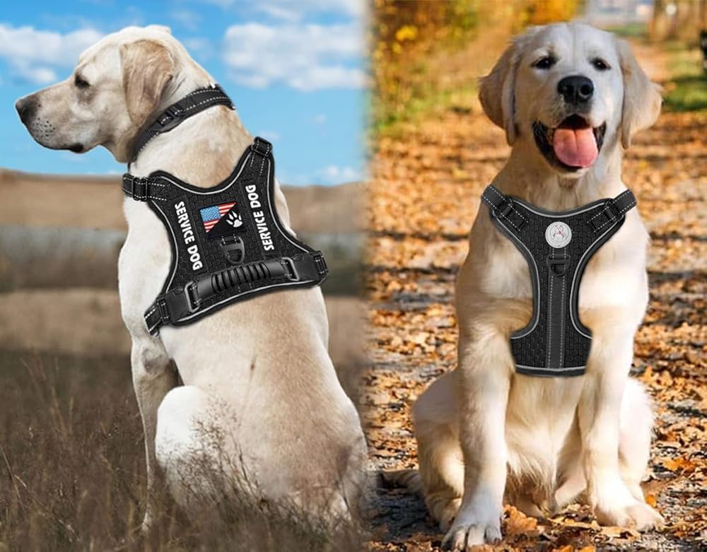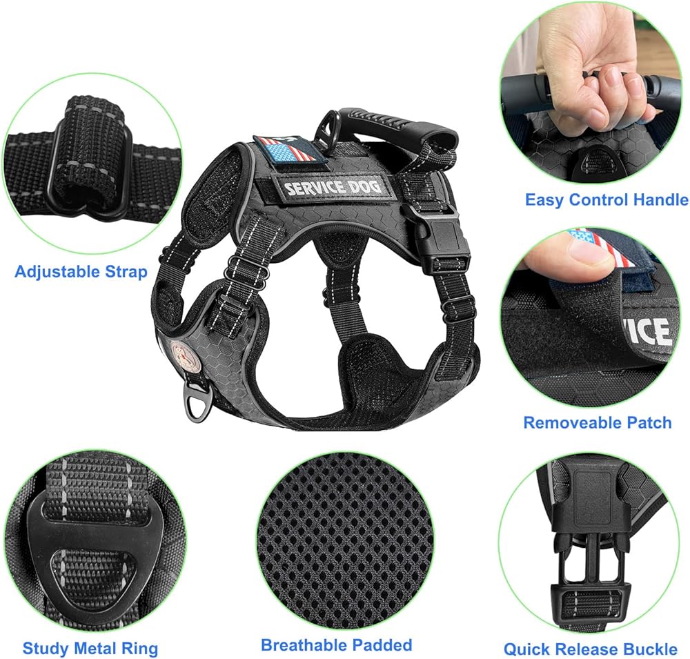 Service Dog Harness,No-Pull Reflective Pet Vest Harness and Leash Set,Adjustable Oxford Service Dog Vest with Handle,Easy Control for Small Medium Large Dogs