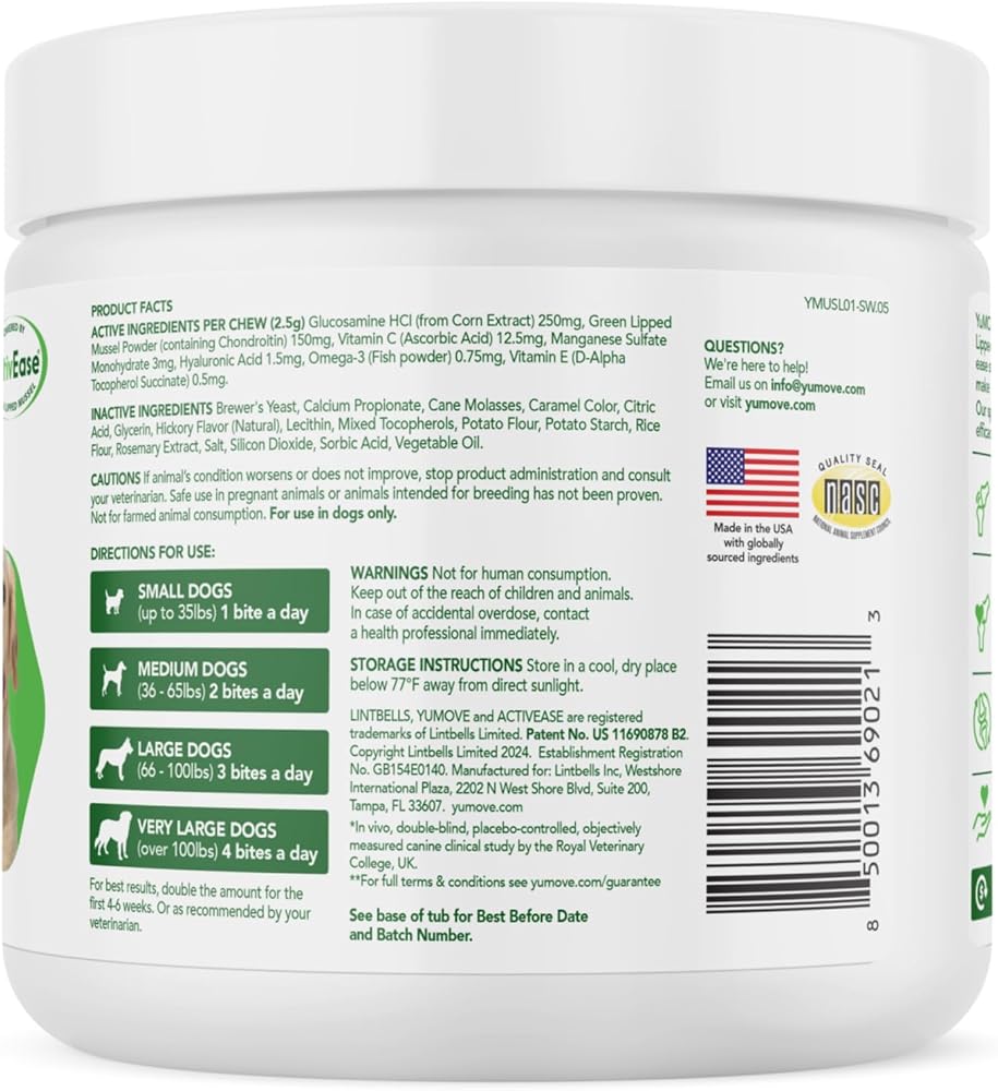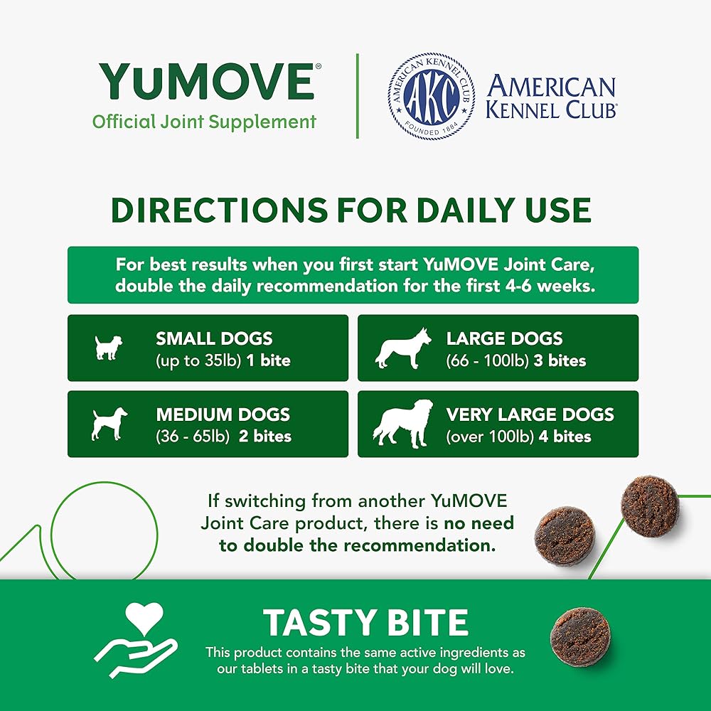 Dog Joint Supplement, Hip and Joint Supplement for Dogs with Glucosamine, Hyaluronic Acid, and Green Lipped Mussel and Omegas, Relief for Dog Hip and Joint Aches and Stiffness, by YuMOVE - 150 Bites