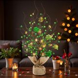 Exquisite Heart Design:This heart-shaped table tree showcases twirling stems, vines, and an array of artificial hearts and berries in assorted colors. Its vintage style makes it a captivating centerpiece for your dining table or any flat surface.