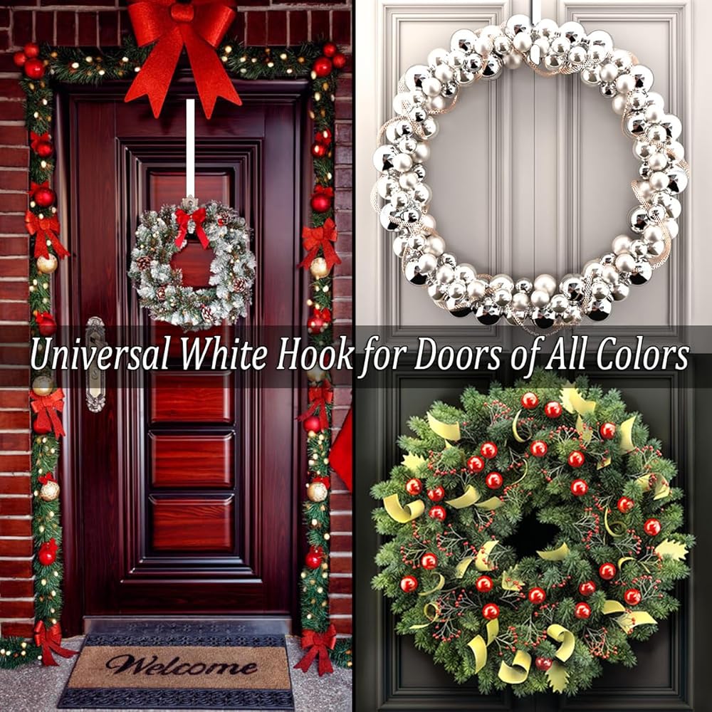 Christmas wreath hanger hooks white over door metal hooks practical clothes towel hanger hooks for Christmas front door decorations